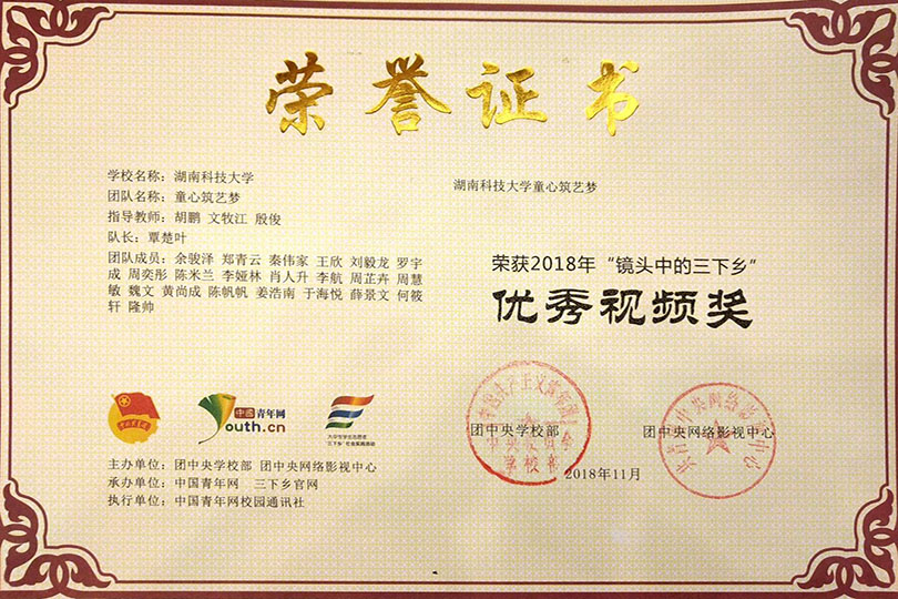 艺术学院“童心筑艺梦”实践团队在2018年“镜头中的三下乡”老员工志愿者暑期社会实践展示活动中,经层层遴选评审,获评“优秀视频奖”,成为威廉希尔体育官网唯一获此殊荣的团队。在2018第三届全国大中专员工“三下乡”暑期社会实践公益传播力展示活动中,公司党委副书记胡鹏荣获“优秀实践教师奖”。