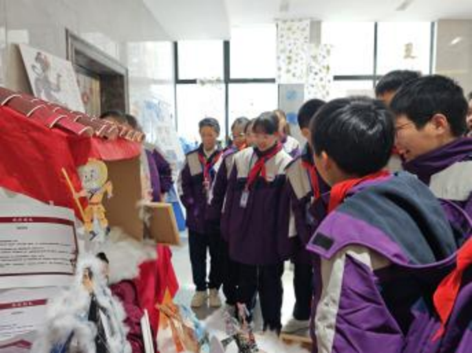 巢炜一行首先出席了九华江声中学第三届校园文化艺术节作品展的开幕式,随后来到崇德楼一楼展厅,在刘辉以及各位实习指导老师的陪同和九华江声中学员工代表的讲解下,共同参观了实习生的非遗成果展,包括《苗画》、《剪纸》、《扎染》、《湘潭纸影》、《彩纸折叠》、《石鼓油纸伞》等六个展区,并对实习生们的教育成果予以了高度评价。
